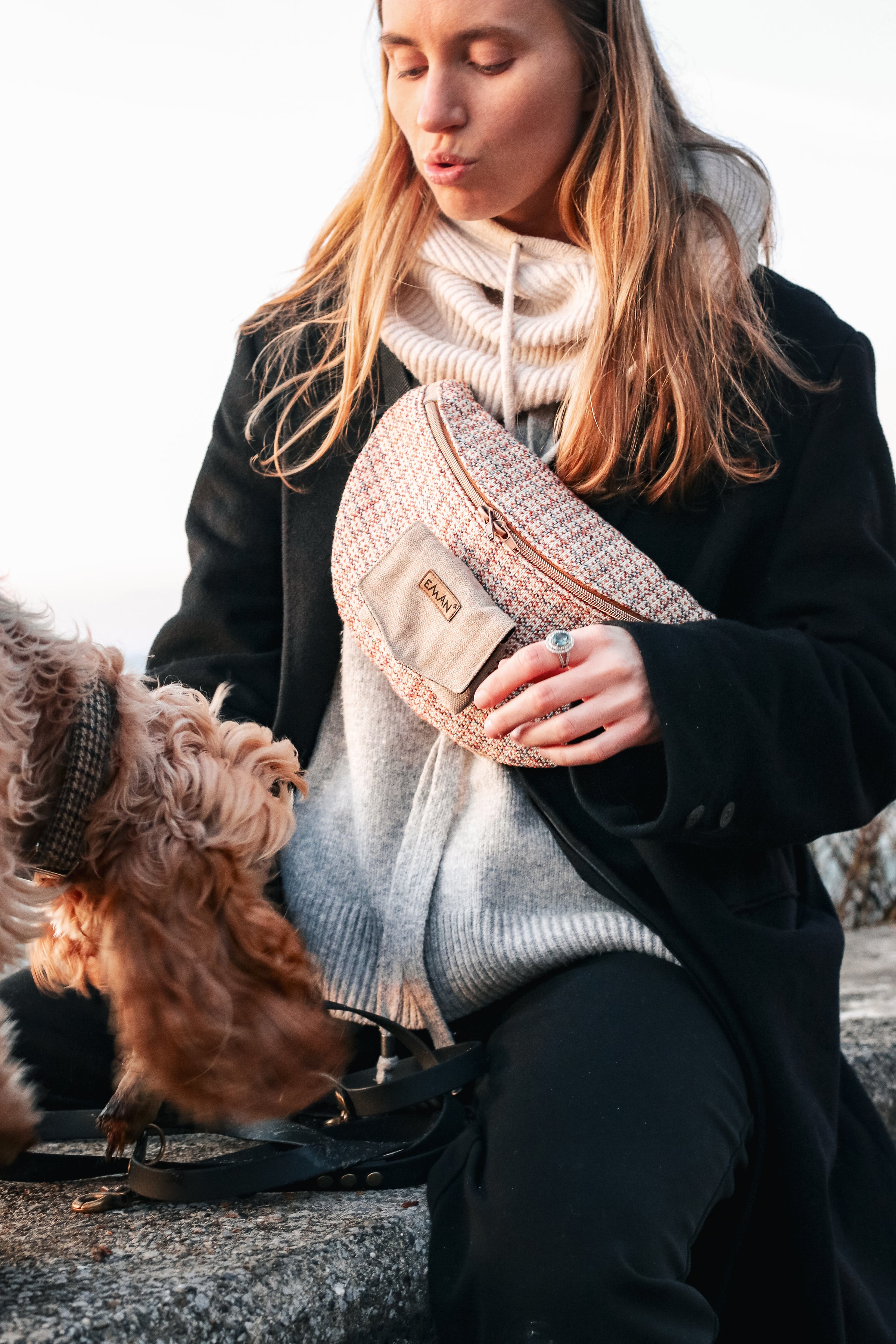 Laisse, clés, porte-monnaie, jouet. Les poches à caca sont discrètement rangées derrière, et les friandises préférées de votre Toutou devant, dans la pochette à rabat aimanté