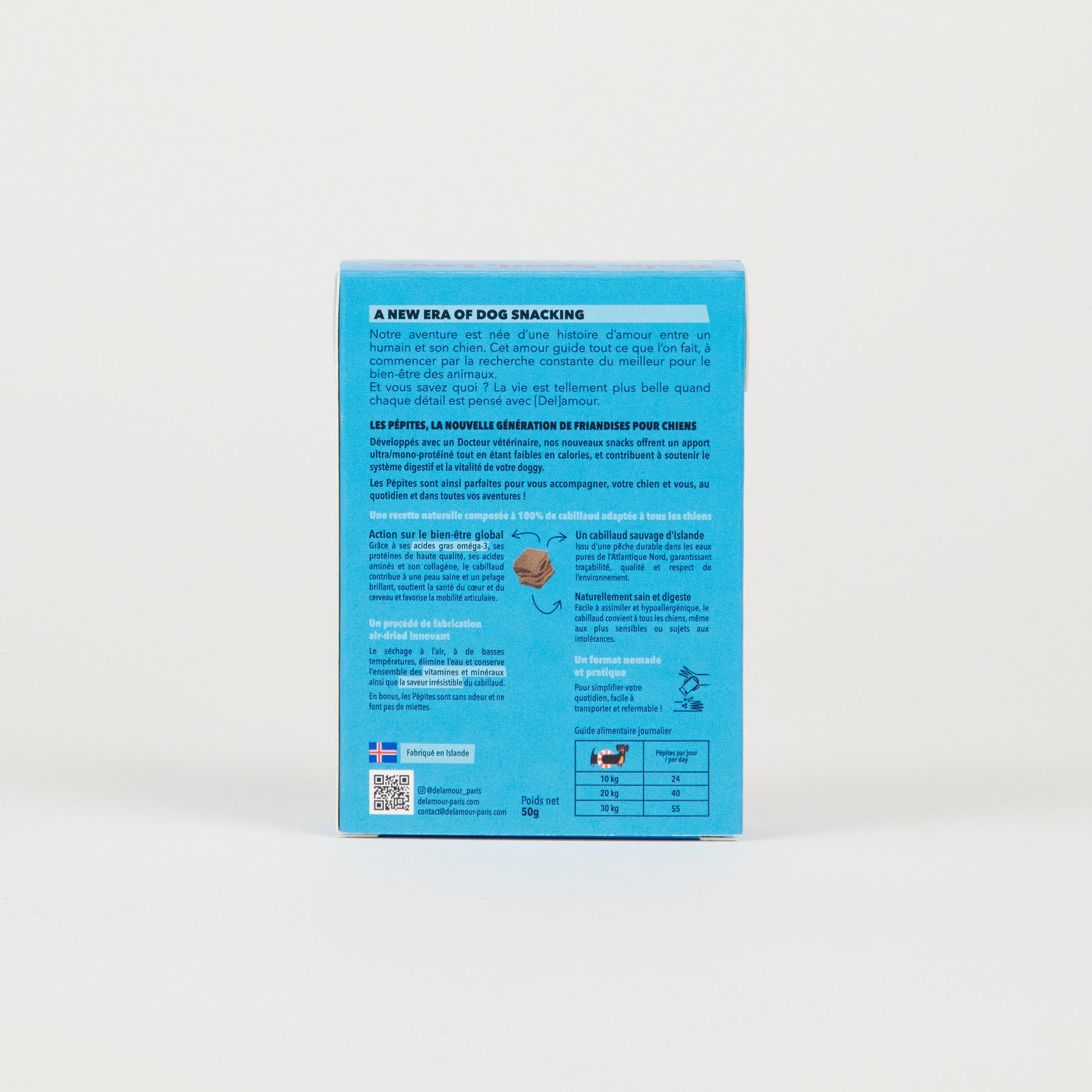Constituées à 100% de cabillaud frais pour un apport riche en protéines, les Pépites sont issues d'un procédé de fabrication air-dried innovant, permettant de préserver les nutriments et la saveur des ingrédients en garantissant une manipulation propre, sans miettes ni odeurs.
