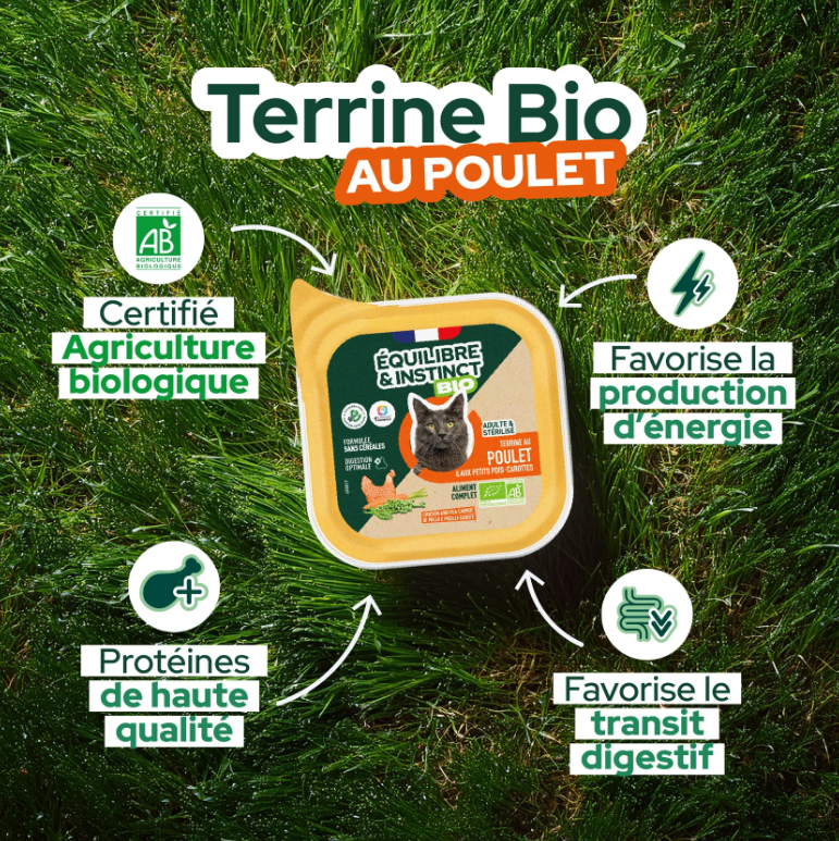 Nous avons sélectionné ces émincés Equilibre & Instinct BIO pour chats adultes 🐱 parce qu'ils sont élaborés à partir de matières premières issues de l’agriculture biologique 🌿 et de viande fraîche 🐟.